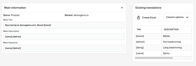 - Specific Default Meta – For categories, brands, and products, with separate setups for each channel and language.